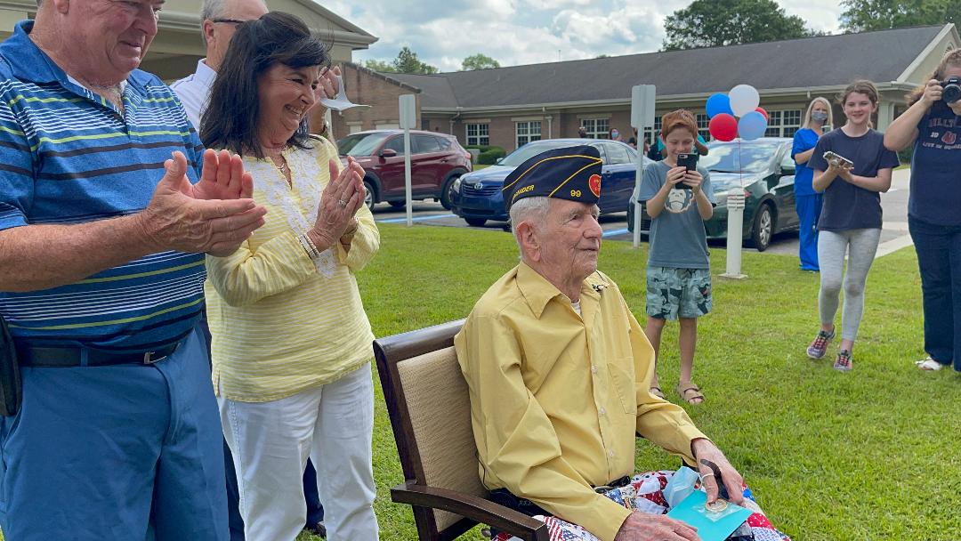 Not only did 4 generations of his family show up to the William F. Green Veterans home to celebrate, so did dozens of bikers. Along with the Patriot Guard Riders, first responders also parade past the war hero as he saluted. His family, all smiles thanked everyone for coming out. His son invited them all to come back for his 200th birthday party.