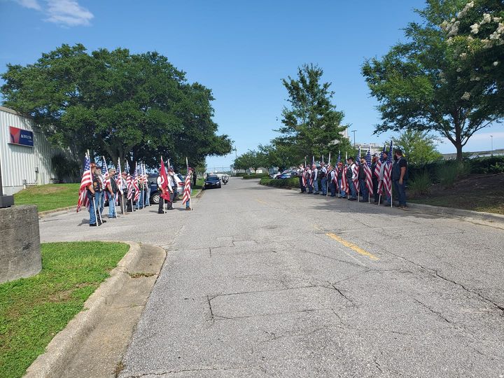 The PGR riders lined up to stand tall for Cook at the Pensacola airport, then escorted his body to a funeral home in Robertsdale Alabama.
