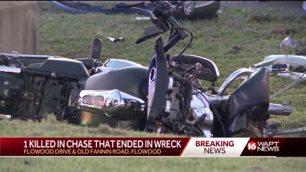 One person was killed Sunday as a result of a police chase that began in Pearl and ended in Flowood.