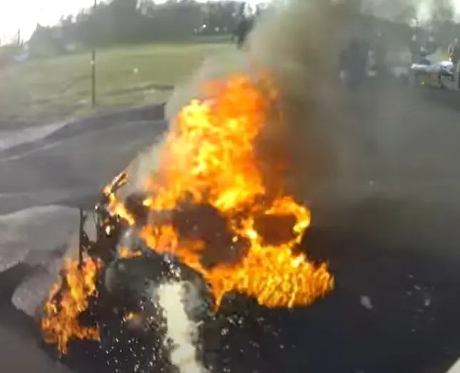VIDEO: Pizza Delivery Driver Saves Biker From Fiery Crash